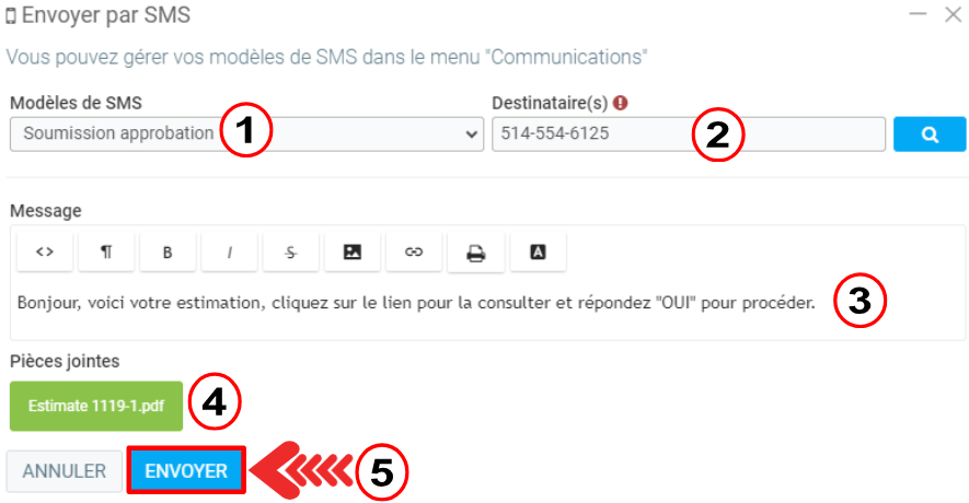 Comment mettre un template pour un SMS avec une soumission/estimé