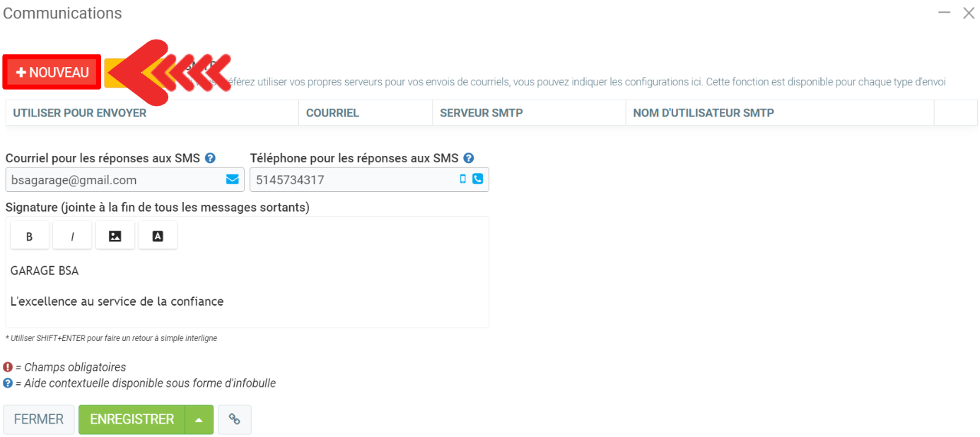 La fenêtre de configuration s'ouvre, dans laquelle vous pouvez cliquer sur l'icône +Nouveau.