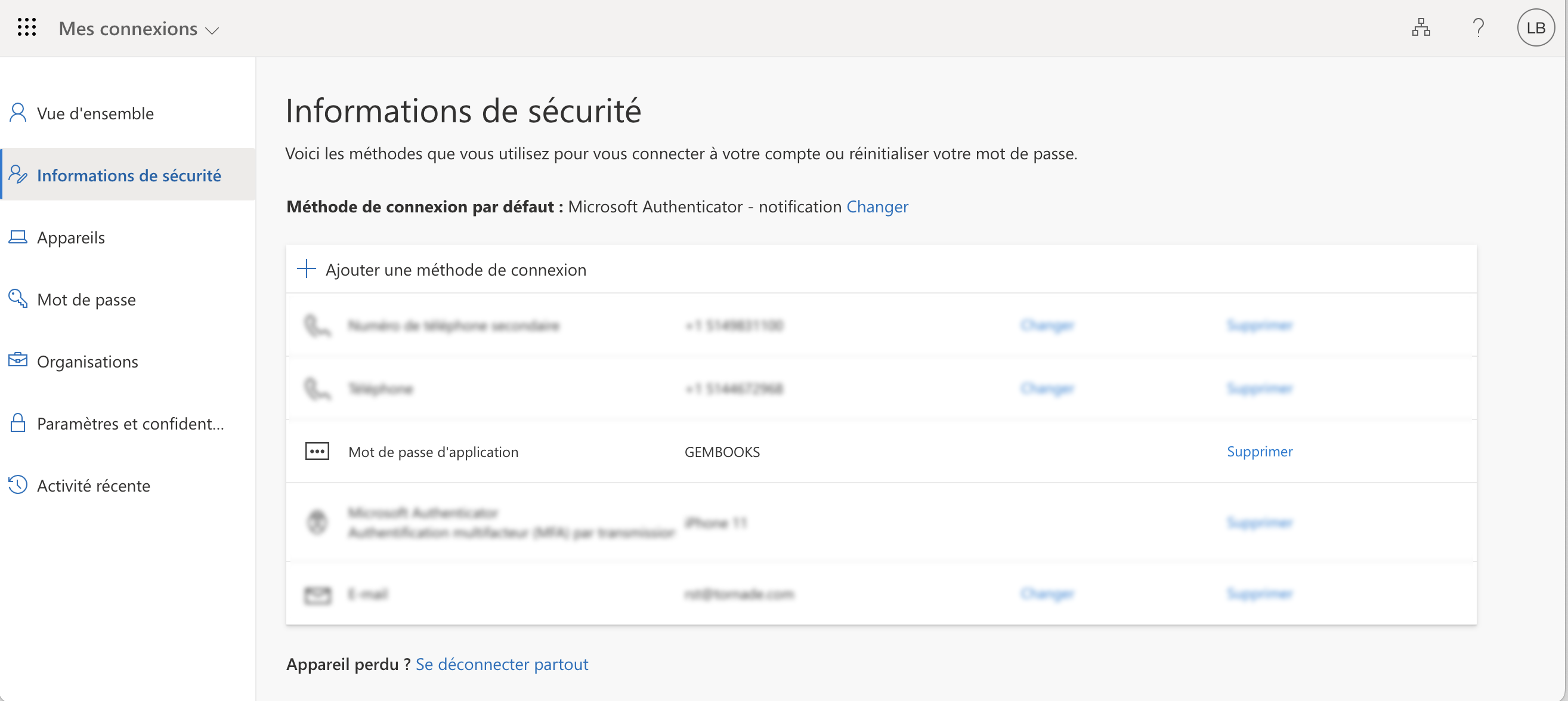 Une fois la migration complétée, il n'est plus possible de créer un mot de passe d'application requis pour configurer GEM-CAR.