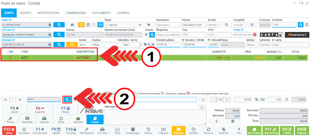 Mettre des notes sur un véhicule et les voir via le Point de vente