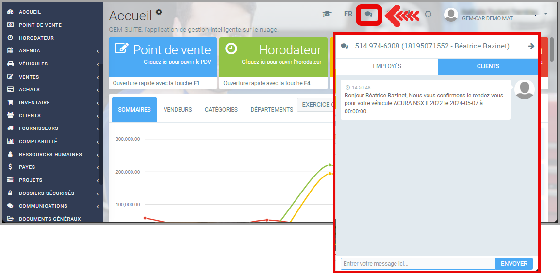 GEM-CAR permet de recevoir la réponse de votre client.