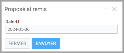 Le client peut refuser le travail proposé. Dans ce cas, l'aviseur sélectionne Proposé et refusé en cliquant avec le bouton de droit de la souris. Voir l'article Rappels: Proposé et refusé pour plus de détails.