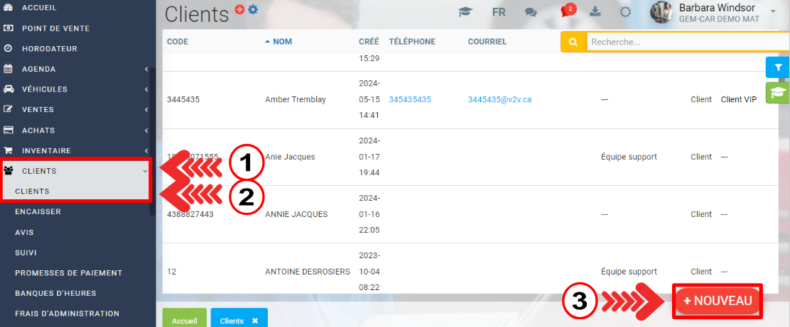 Cliquez sur Clients > Clients > +Nouveau.