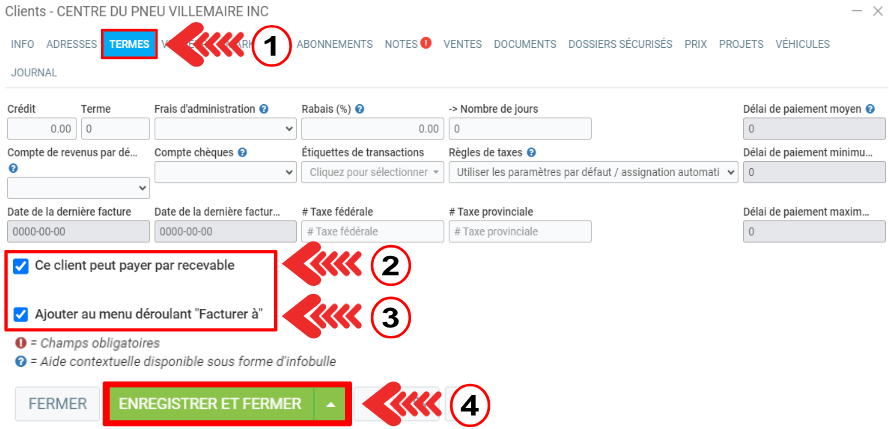 - Ajouter au menu déroulant 'Facturer à'