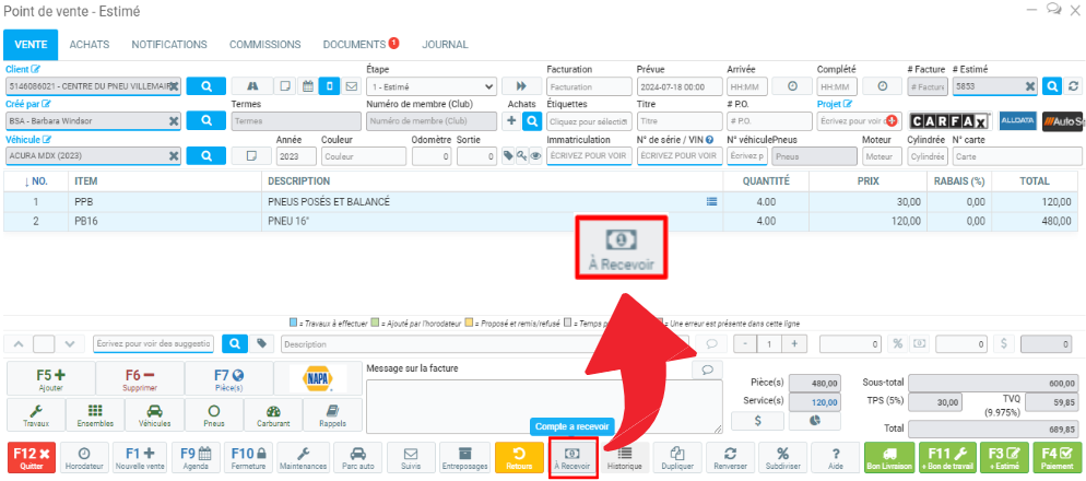 Mettre des notes sur un véhicule et les voir via le Point de vente
