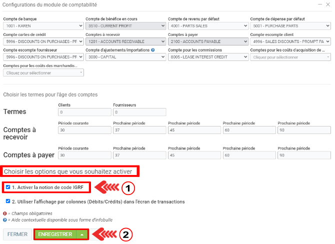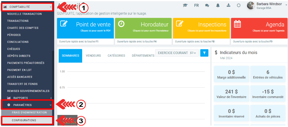 Cliquez sur le menu Comptabilité > Paramètres > Configurations.