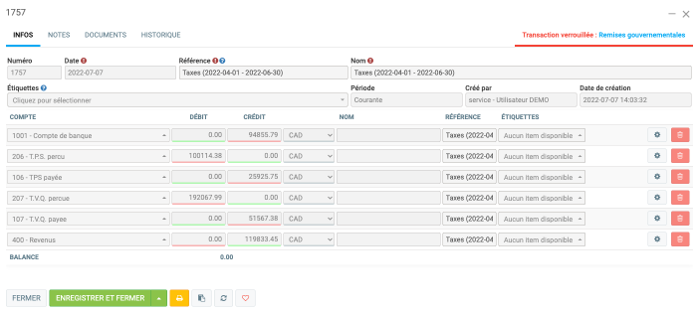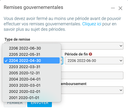 Dans le menu Comptabilité > Remises gouvernementales.