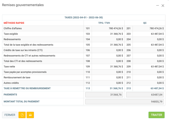 Rapport de taxes: Méthode rapide
