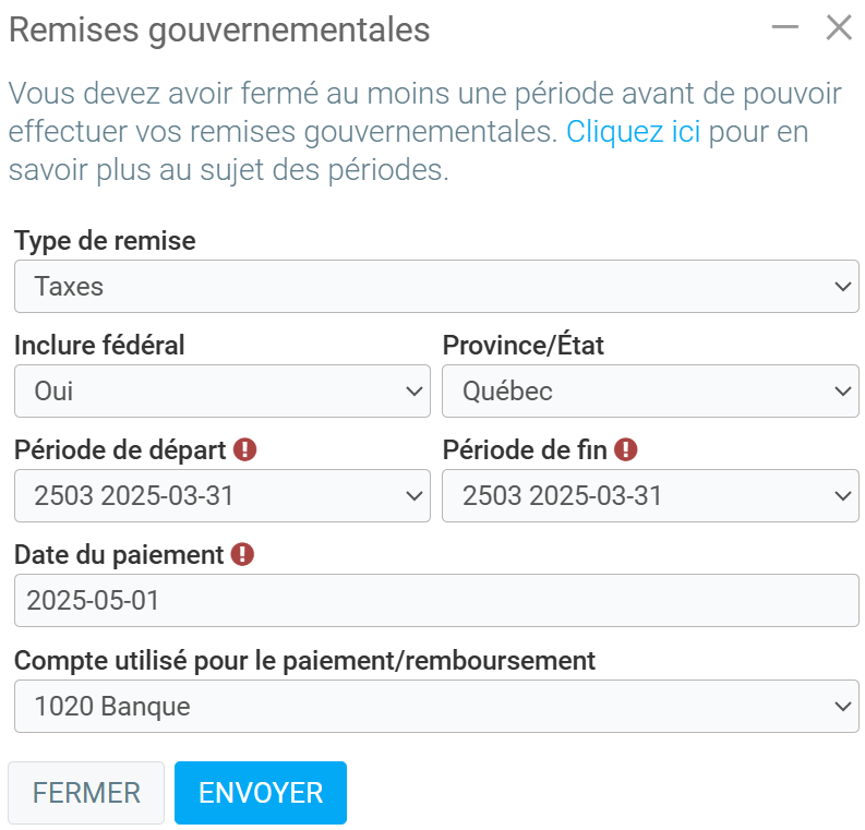 Rapport de taxes - Méthode automatique de production de rapport de taxes (méthode conseillée)