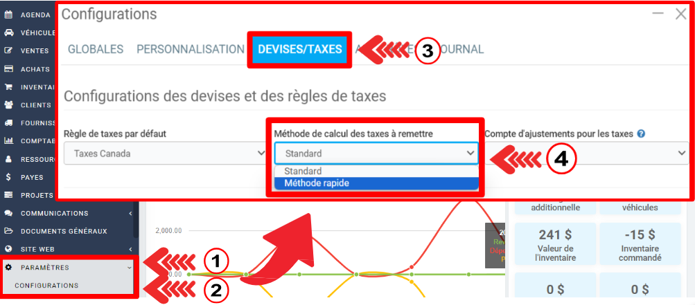 Ensuite, lors de vos rapports de taxes ou de vos remises gouvernementales, les montants qui seront affichés seront calculés selon la méthode rapide.