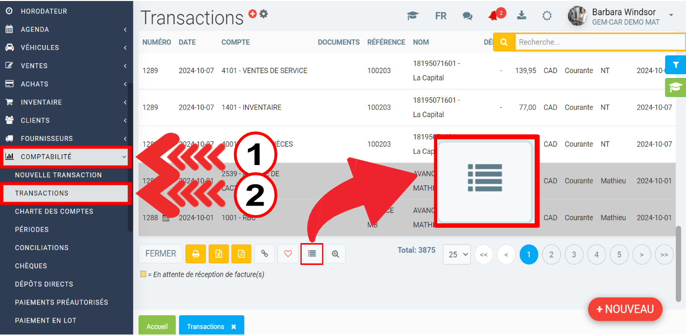 Pour ce faire, dans le menu de gauche, cliquez sur Comptabilité > Transactions.