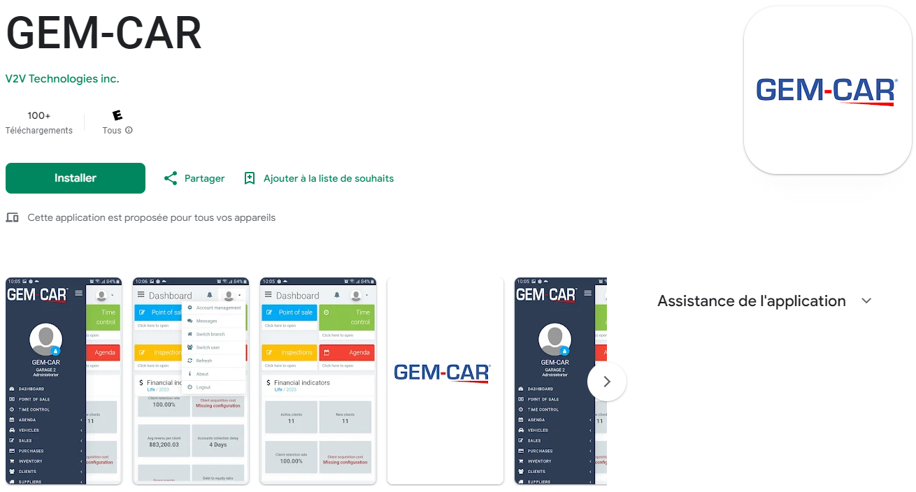 Mais vous pouvez aussi utiliser l'application, que vous pouvez facilement télécharger à partir du lien GEM-CAR.