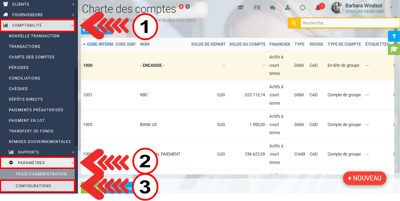 Cliquez sur le menu Comptabilité > Transactions > +Nouveau. Dans la page suivante, faire les choses suivantes: