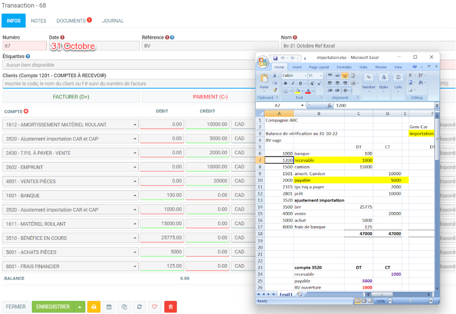 Avec les GL du GEM-CAR par défaut VS le Excel qui vient de Simple Comptable.