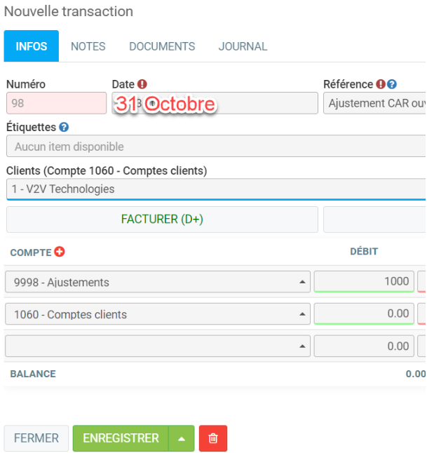 Si les recevables ne balancent pas, ajouter une transaction d’ajustement.