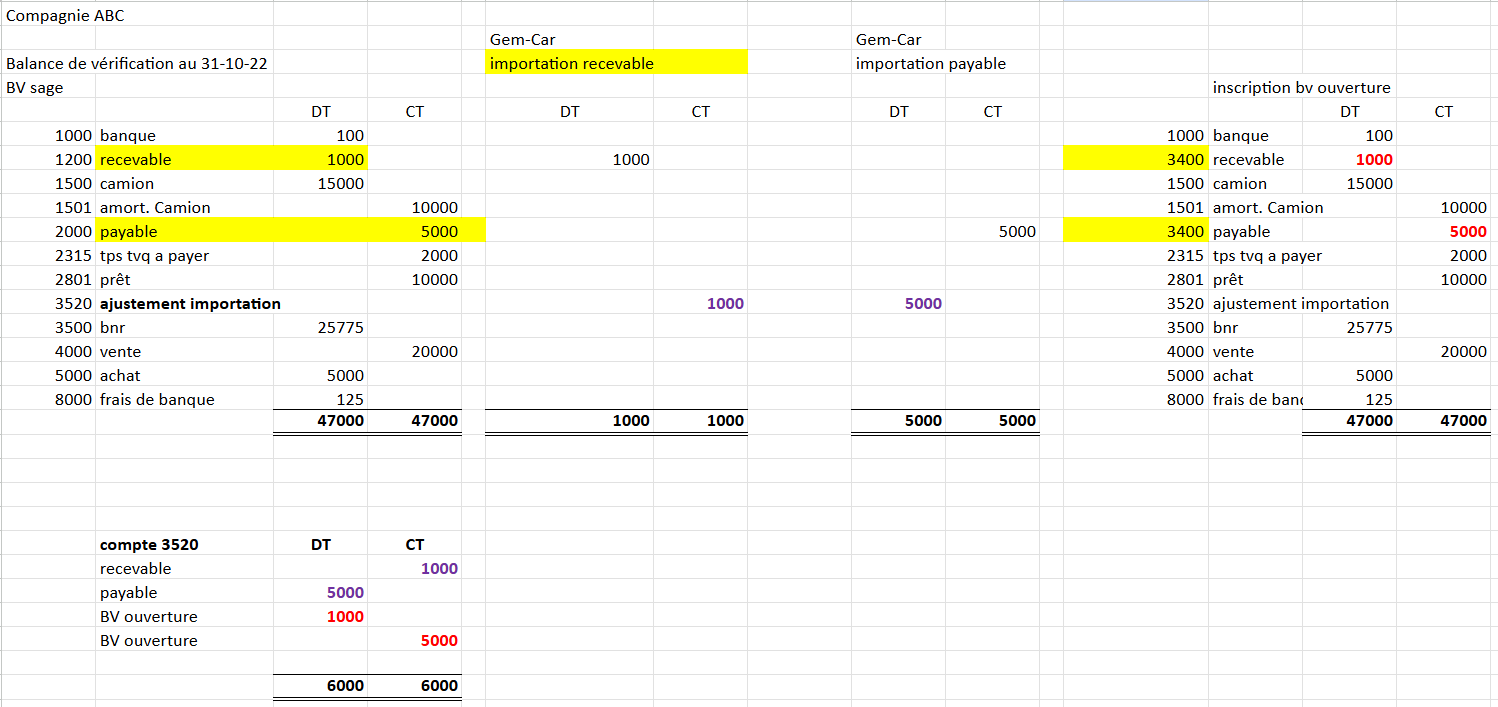 Conclusion: Le solde du 3520 devrait être à 0 à la fin de l’ajout de la BV.