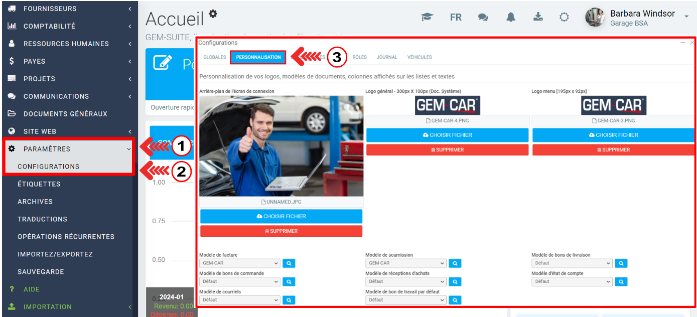 Si vous n'avez pas de succursale, rendez-vous dans le menu Paramètres > Configuration > dans l'onglet Personnalisation.
