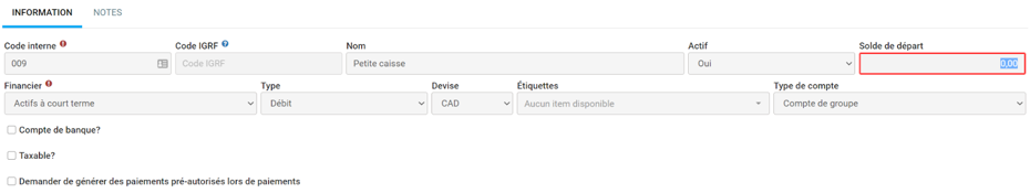 Sur votre ancien logiciel, imprimez une balance de vérification. Ensuite, pour chaque compte, valider le montant dans le champ "Solde de départ" du compte.