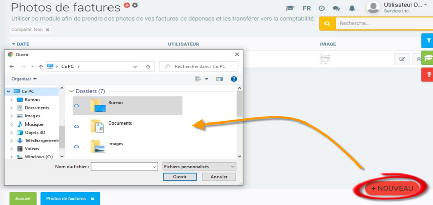 Si vous utilisez un ordinateur, vous devrez importer un fichier à partir d'un de vos dossiers. Après avoir sélectionné la photo, celle-ci se retrouvera dans la liste de photos en attente de traitement sur votre page d'accueil et dans le menu Photos de factures.