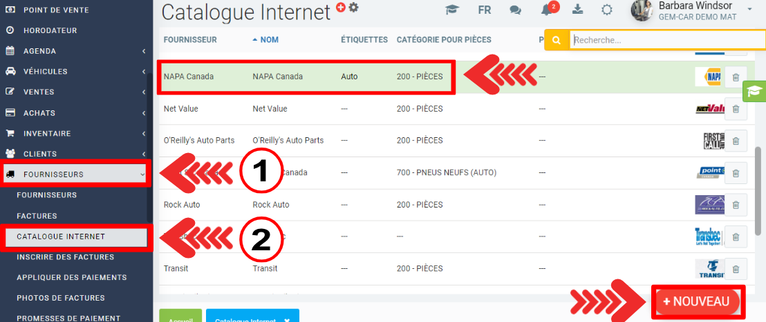 Dans le menu de gauche, sélectionnez l'onglet Fournisseurs > Catalogue internet.