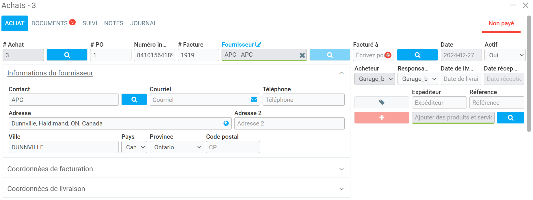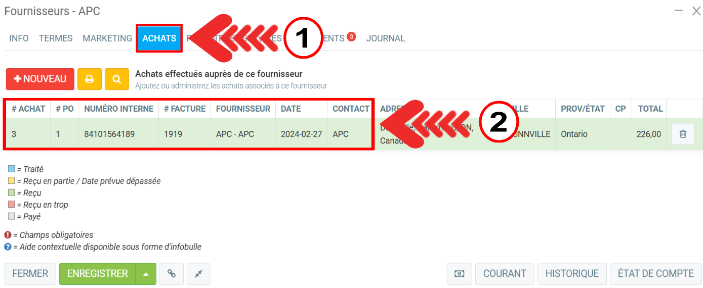 Dans le menu Fournisseurs > Fournisseurs sélectionnez le fournisseur.