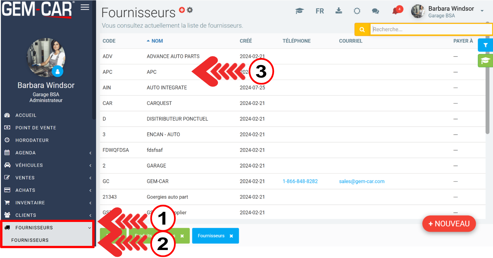 Pour saisir le taux de taxe correct pour les fournisseurs internationaux, cliquez sur Fournisseurs > Fournisseurs et choisissez le fournisseur.