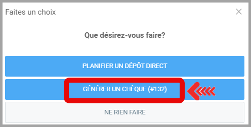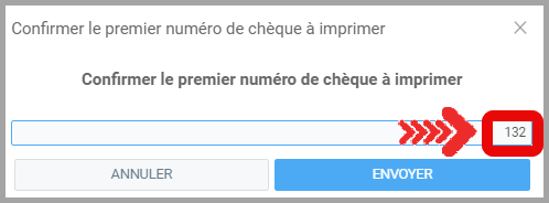 Le numéro du chèque sera automatiquement saisi, mais vous pourriez le modifier.
