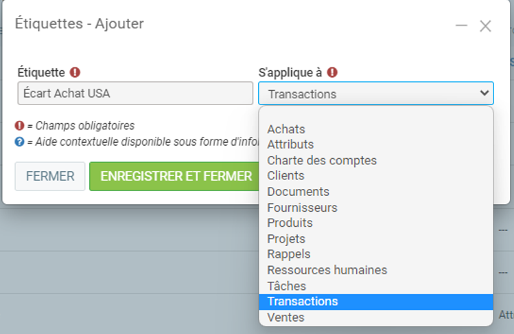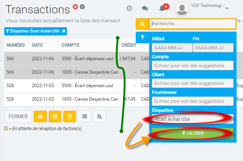 Paiement en devises étrangères d’un fournisseur - Astuce de recherche avec étiquette aux transactions