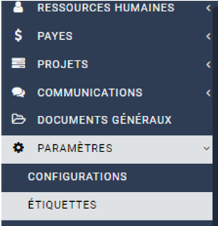 Allez dans le menu “Paramètres” / “Étiquettes”