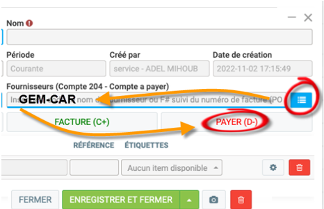 Sélectionner le Nom du fournisseur que vous souhaitez payer dans la case Fournisseur à partir la liste de résultats qui vous est proposée. Une fois le fournisseur sélectionné, cliquez sur le bouton "PAYER (D-)".