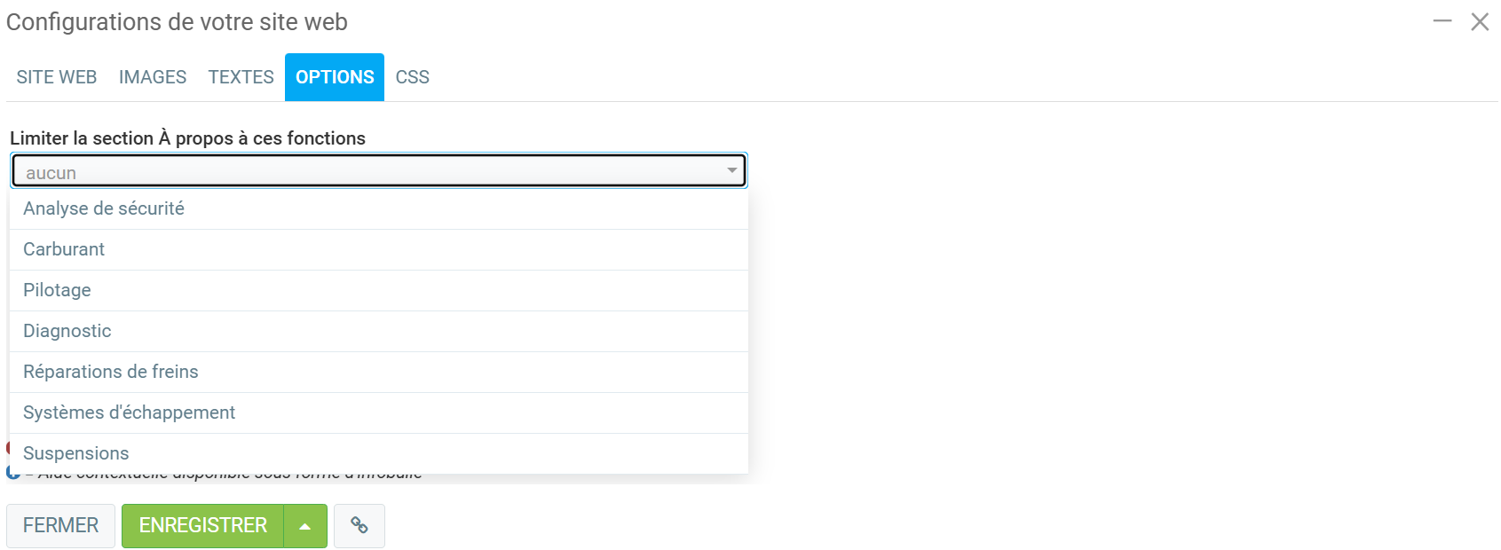 Dans cette FAQ, nous expliquons de manière pratique comment configurer et personnaliser facilement votre site GEM-FNI. Vous trouverez ici des instructions pas à pas pour ajuster les paramètres, gérer le contenu et optimiser les fonctionnalités. Pour configurer et générer votre site web, cliquez sur le menu de gauche Site web > Configurations > Configurations.