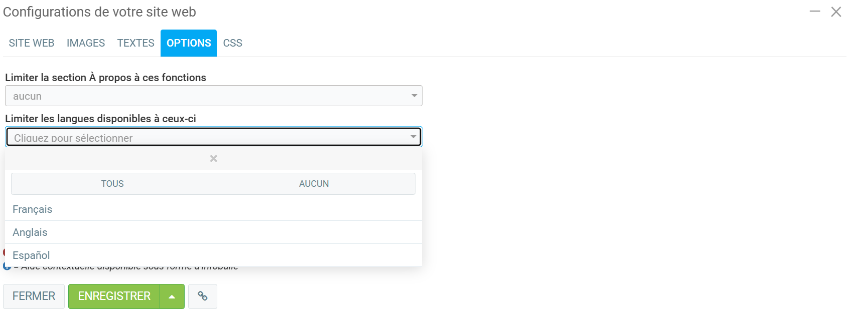 2. Limiter les langues disponibles à ceux-ci
