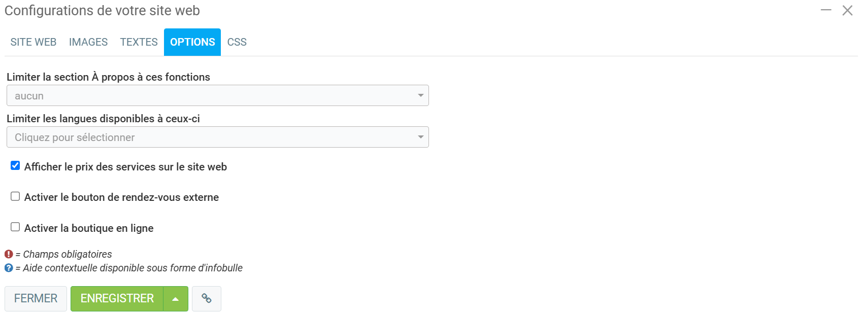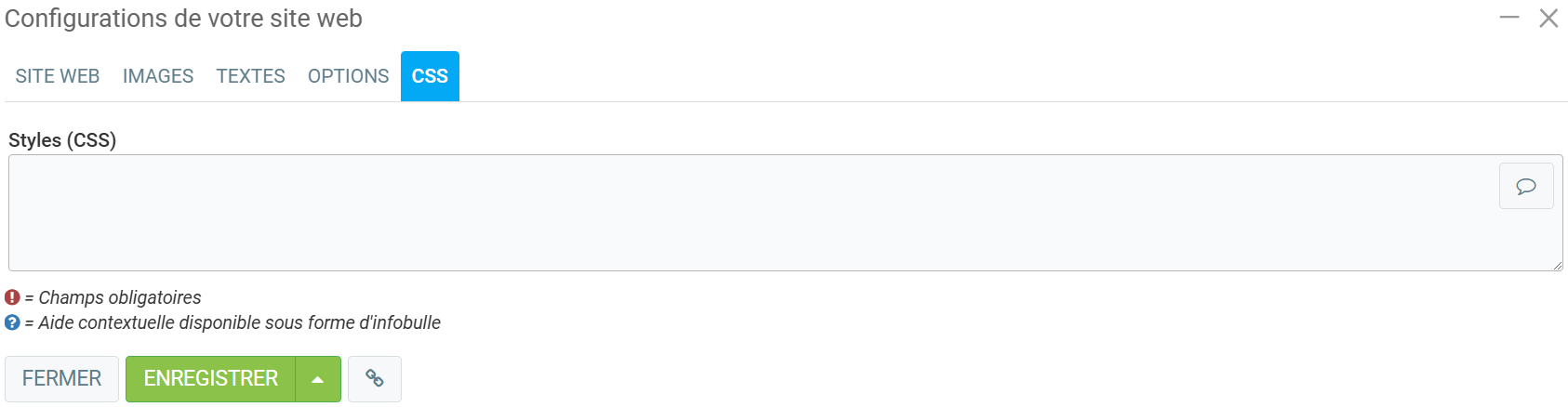 Dans le dernier onglet, CSS, vous pouvez écrire les Styles (CSS). Cliquez ensuite sur Enregistrer.