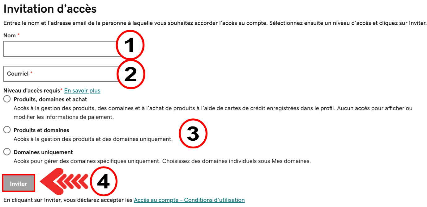 Dans la page Invitation d'accès, entrez les informations suivantes: