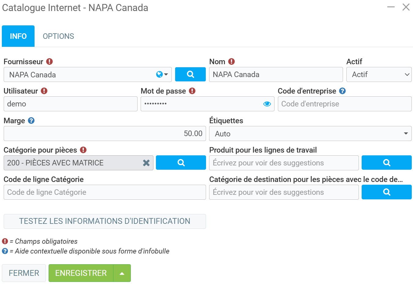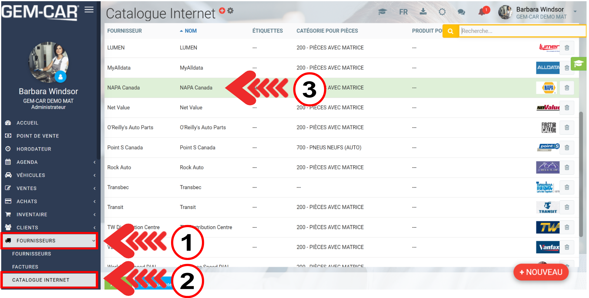 Dans notre exemple, notre fournisseur par défaut est NAPA.