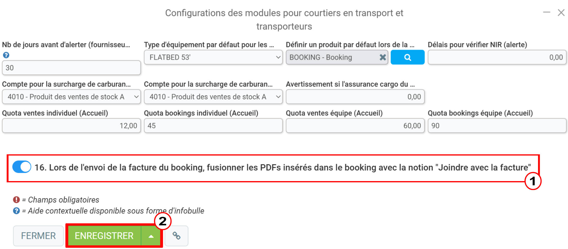 Ensuite, faites défiler la page et cochez l'option Lors de l'envoi de la facture du booking, fusionner les PDFs insérés dans le booking avec la notion "Joindre avec la facture".