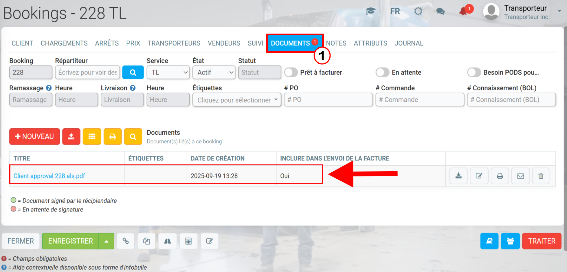 Facture avec POD attaché dans GEM-TMS