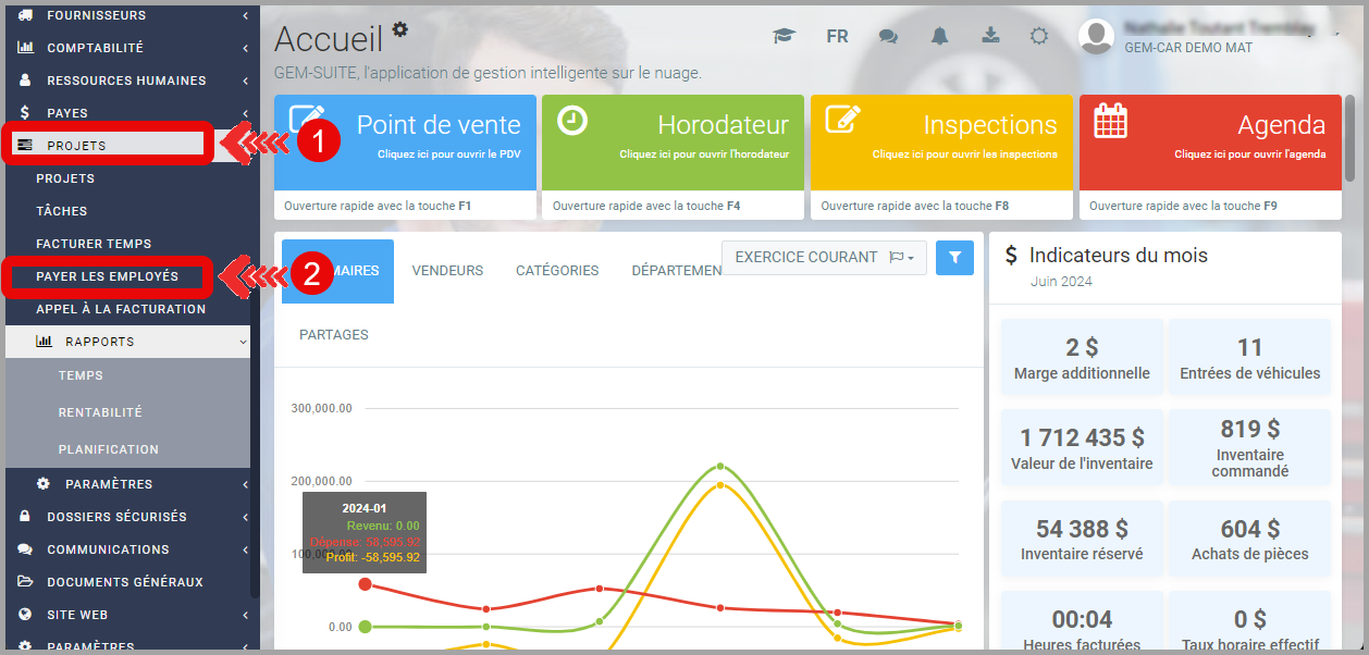 Depuis le menu principal, cliquez sur Projets > Payer les employés.