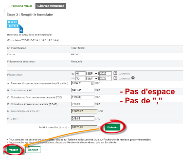 - Au débit: CSST À PAYER (par exemple: 46.46$ )
