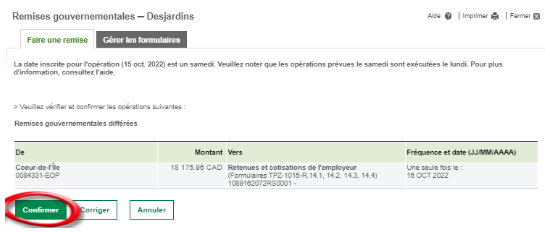- Au débit: REMISE FÉDÉRALE (par exemple: 838.90$ )