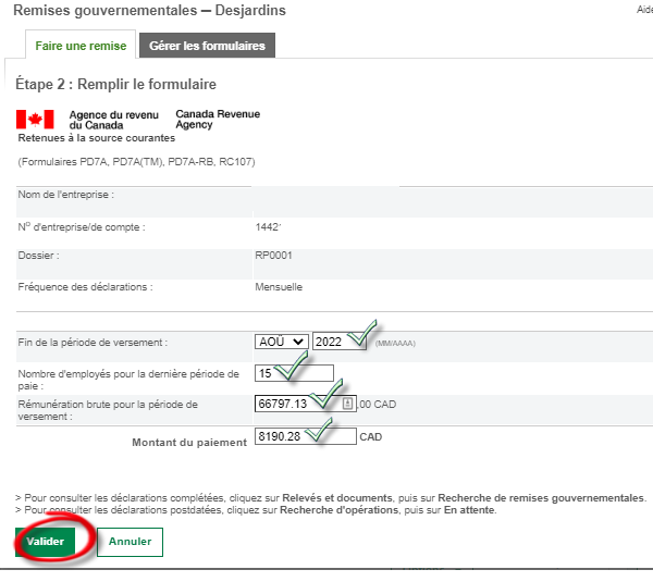 - Validez les informations en ligne versus votre rapport de GEM-BOOKS,