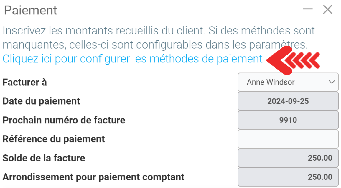 Cliquez sur Cliquez ici pour configurer les méthodes de paiement.
