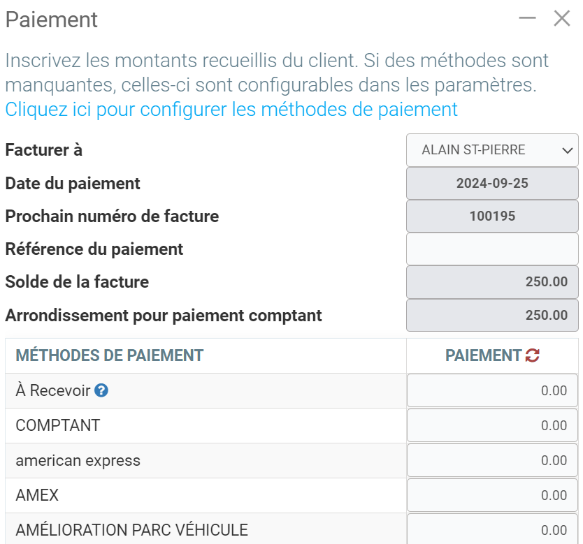 Configuration des méthodes de paiement