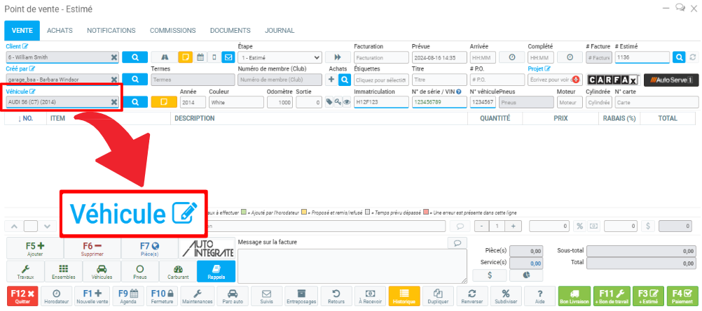 1. Dans le Point de vente, cliquez sur Véhicule (en bleu au-dessus de la zone de texte).
