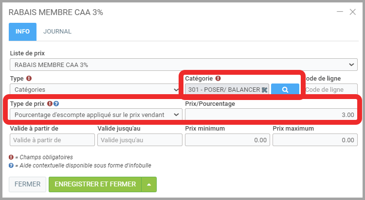 - Escompte par liste de prix