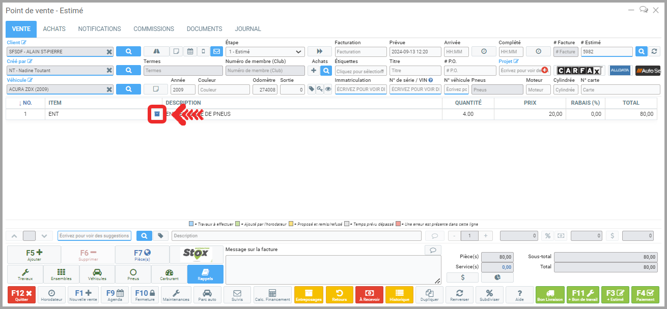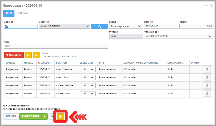 - Placer les pneus en entreposage. Voir Placer des Placer des pneus en entreposage à partir du Point de vente pour plus de détails.