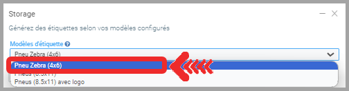 Remarque : Pour une meilleure expérience lors de l'impression des étiquettes, veuillez utiliser l'imprimante Zebra TK 420 pour les étiquettes d’entreposage de pneus.
