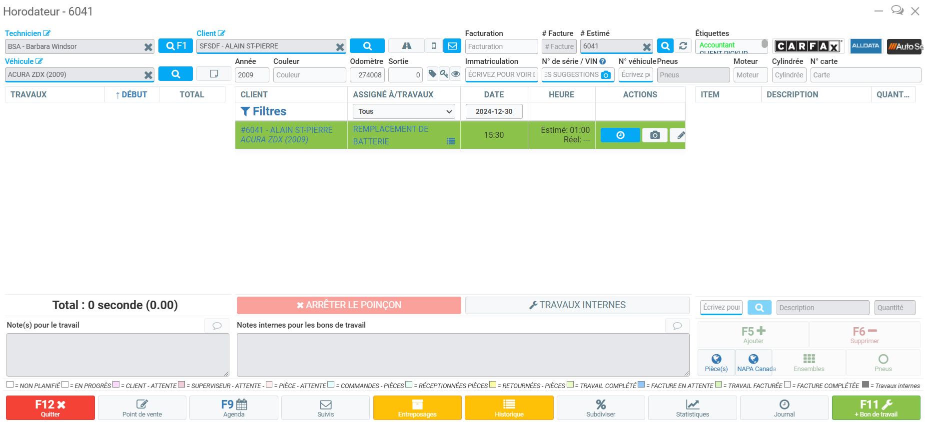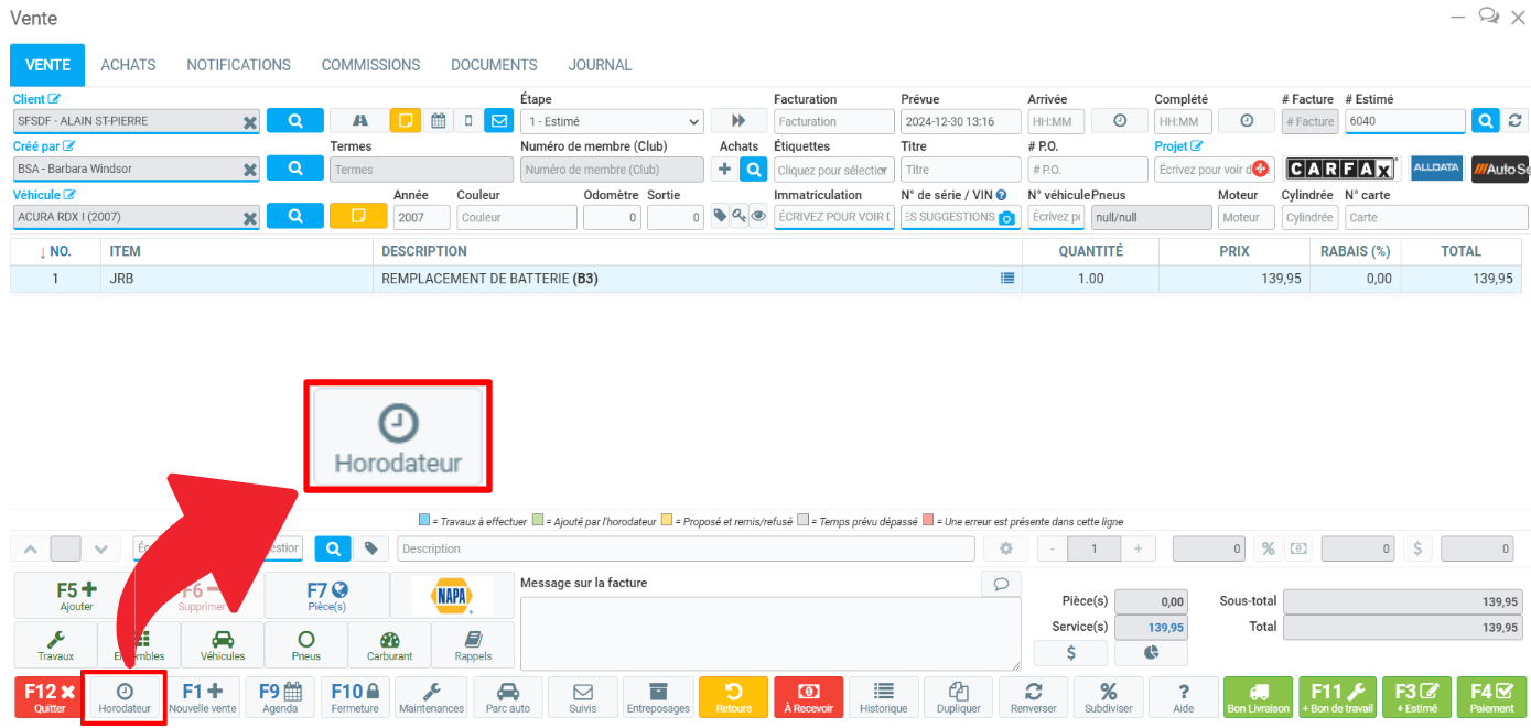 Pour commencer, ouvrez le point de vente, sélectionnez le client et le service à effectuer, puis cliquez sur L'Horodateur à côté du bouton Quitter.