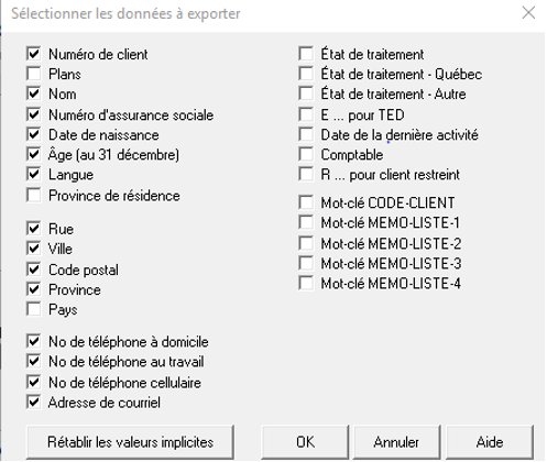 Clients marqués et Exporter vers le fichier - délimité par une virgule.
