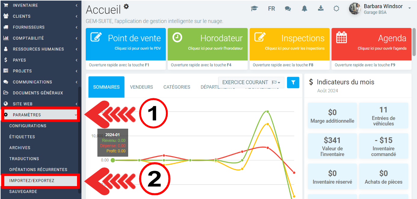 Cliquez sur Paramètres > Importez/Exportez.